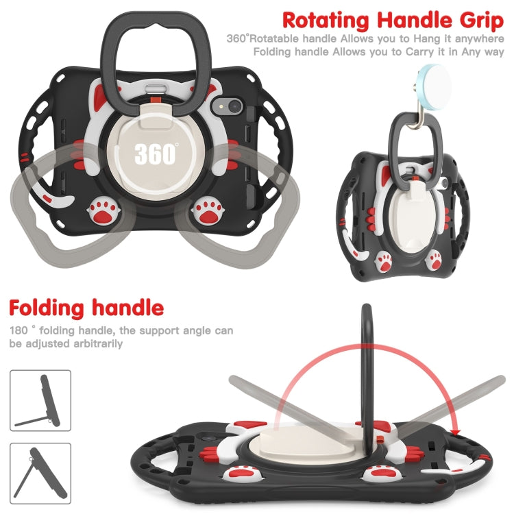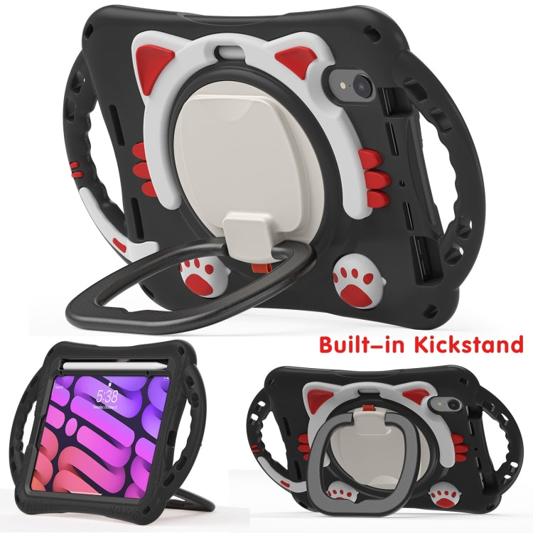 For iPad mini 6 / mini 2024 Cute Cat King Kids Shockproof Silicone Tablet Case with Holder & Shoulder Strap & Handle(Black Red)