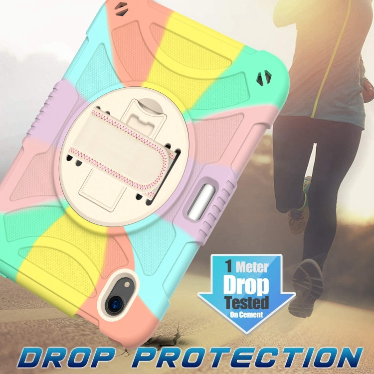 For iPad mini 6 / mini 2024 PC Hybrid Silicone Tablet Case with Holder & Hand Strap & Shoulder Strap(Colorful Rose Gold)