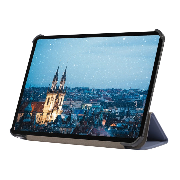 For iPad mini 6 / mini 2024 Skin Texture TPU Leather Tablet Case with 3-folding Holder(Lavender Grey)
