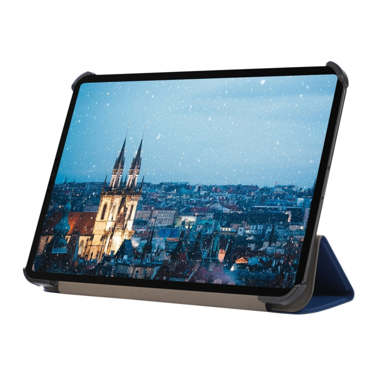 For iPad mini 6 / mini 2024 Skin Texture TPU Leather Tablet Case with 3-folding Holder(Navy Blue)