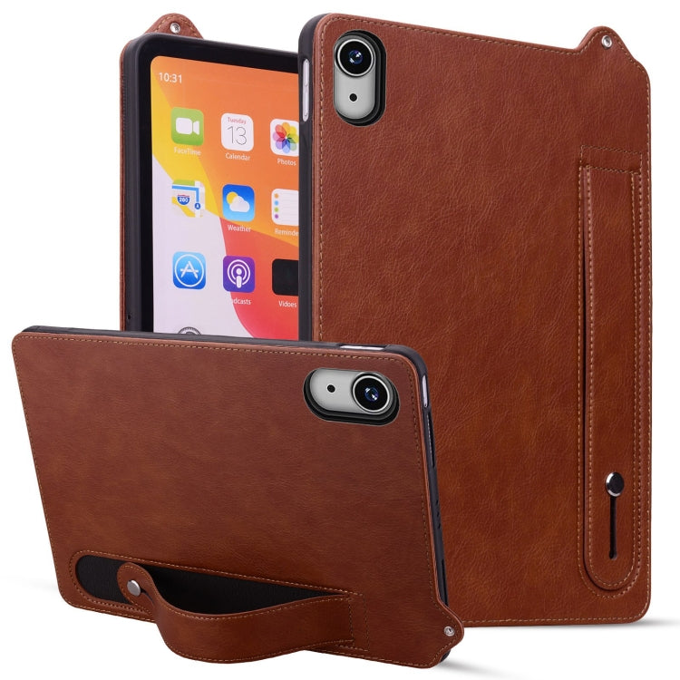For iPad mini 6 / mini 2024 TPU Leather Back Tablet Case with Wristband(Brown)