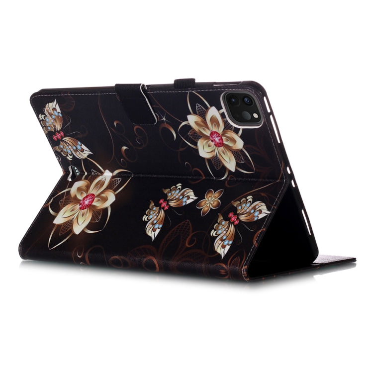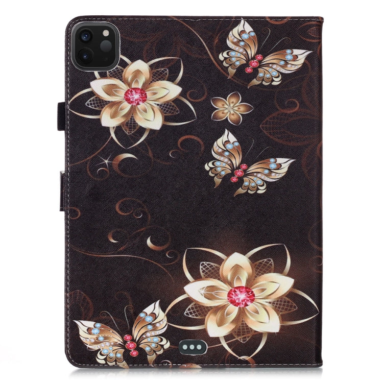 For iPad Pro 11 (2020) Colored Drawing Horizontal Flip Leather Tablet Case, with Sleep / Wake-up Function & Holder & Card Slo & Wallet(Golden Flower Butterfly)