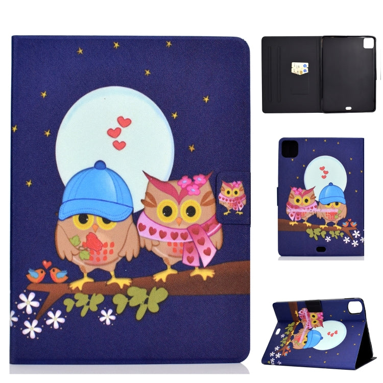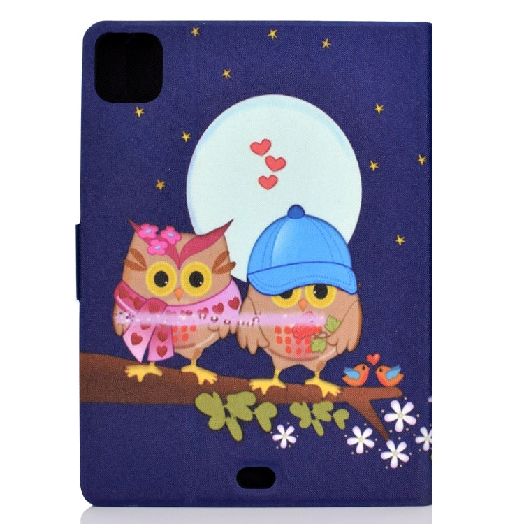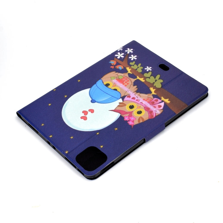 For iPad Pro 11 2020 Electric Pressed TPU Left and Right Open Flat Leather Tablet Case with Sleep Function & Card Buckle Anti-skid Strip(Couple Owls)