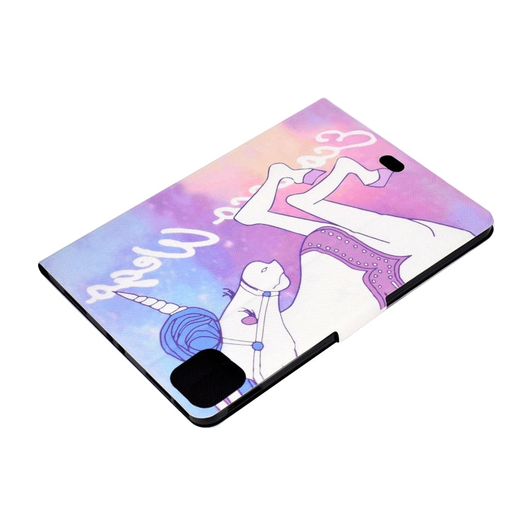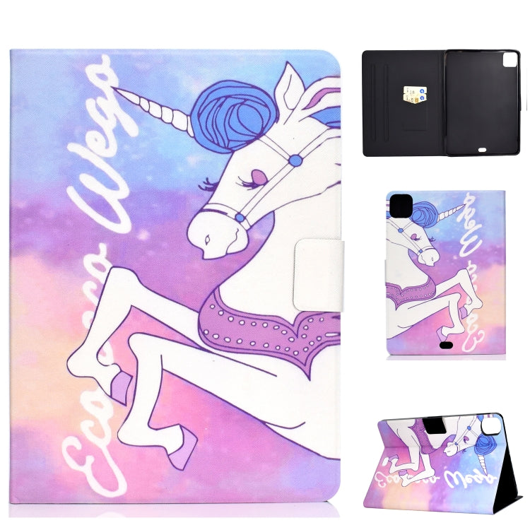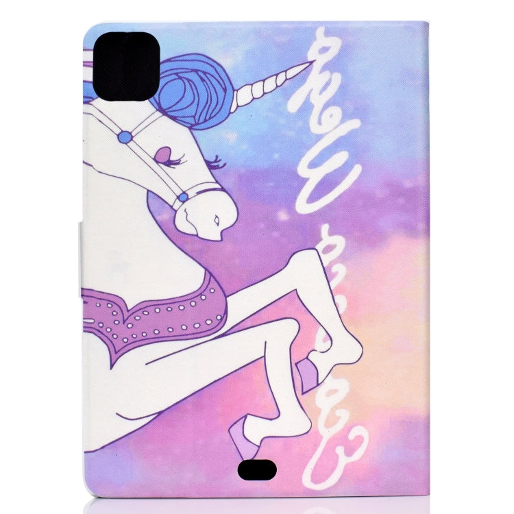 For iPad Pro 11 2020 Electric Pressed TPU Left and Right Open Flat Leather Tablet Case with Sleep Function & Card Buckle Anti-skid Strip(Pink Horse)