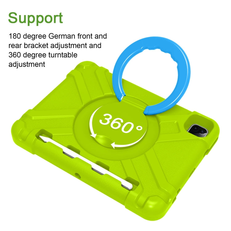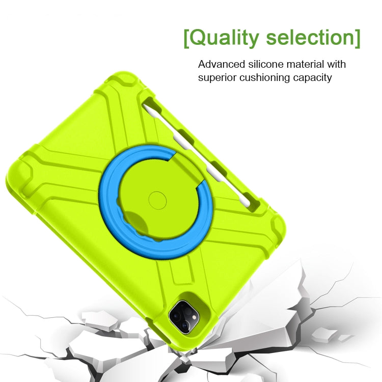 For iPad Pro 11 (2020) PC + Silicone Shockproof Combination Tablet Case with 360 Degree Rotating Holder & Handle(Grass Green+Blue)