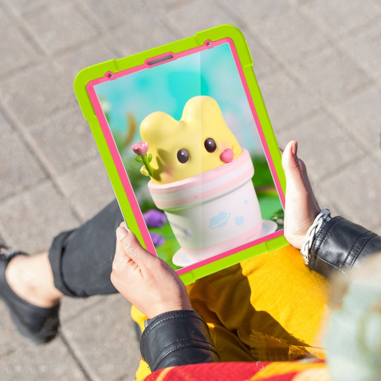For iPad Pro 11 (2020) PC + Silicone Shockproof Combination Tablet Case with 360 Degree Rotating Holder & Handle(Grass Green+Rose Red)