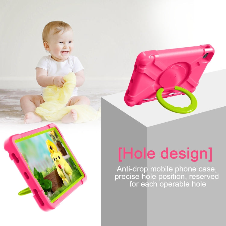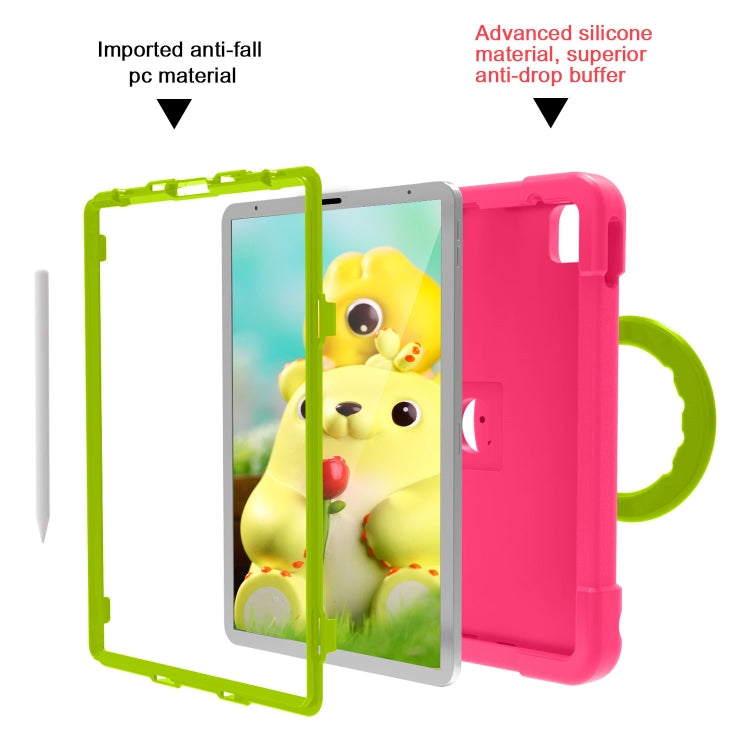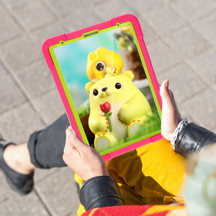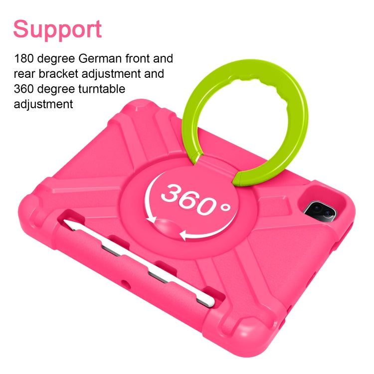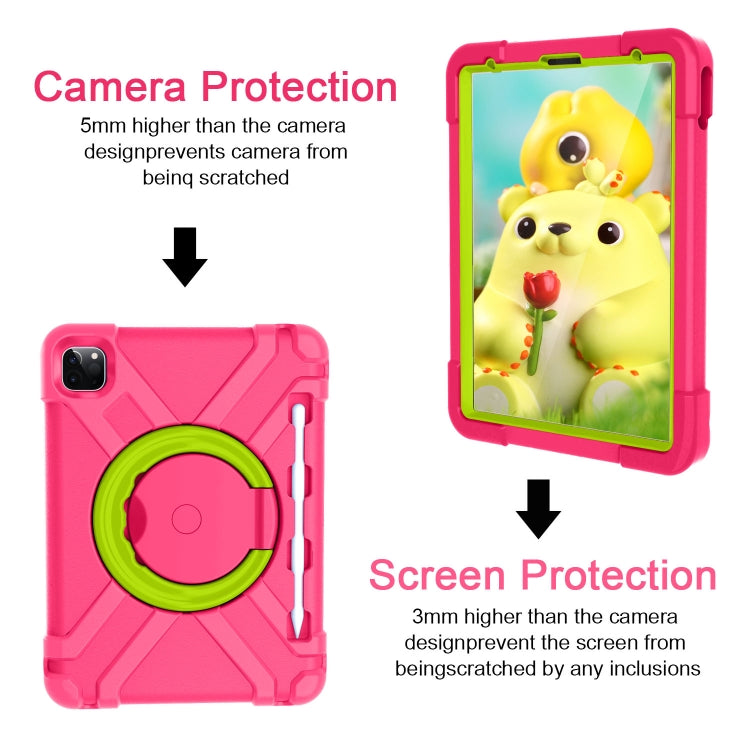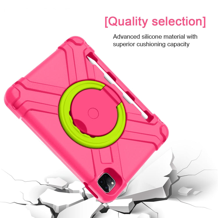 For iPad Pro 11 (2020) PC + Silicone Shockproof Combination Tablet Case with 360 Degree Rotating Holder & Handle(Rose Red+Grass Green)