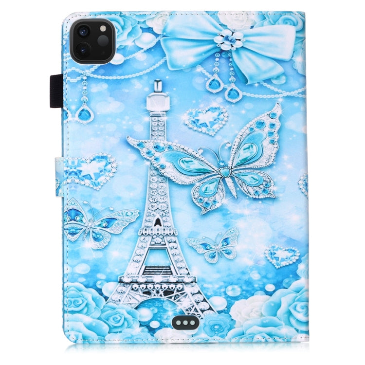 For iPad Pro 11 (2020) Plain Weave Texture Colored Drawing Horizontal Flip Leather Tablet Case, with Sleep / Wake-up Function & Holder & Card Slo & Wallet(Tower Butterfly)