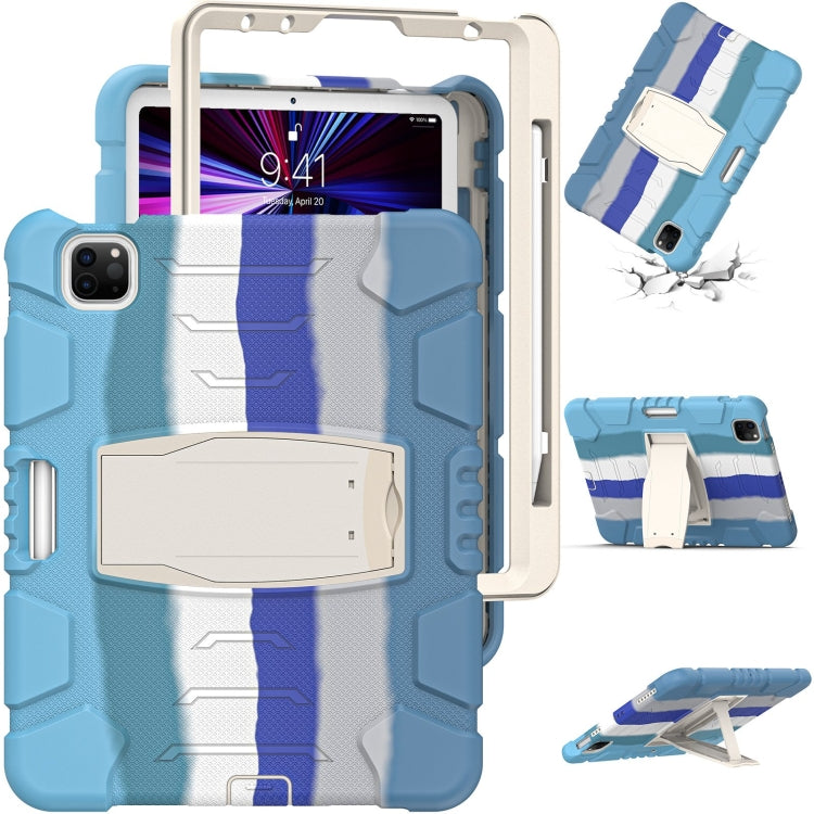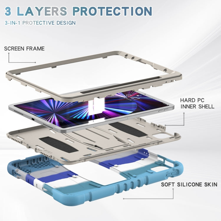 For iPad Pro 11 2022 / 2021 / 2020 / 2018 3-Layer Protection Screen Frame + PC + Silicone Shockproof Combination Tablet Case with Holder(Colorful Blue)
