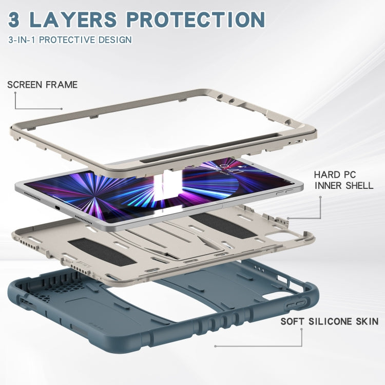 For iPad Pro 11 2022 / 2021 / 2020 / 2018 3-Layer Protection Screen Frame + PC + Silicone Shockproof Combination Tablet Case with Holder(Cornflower Blue)