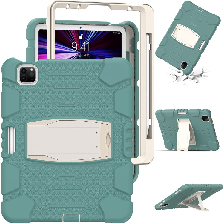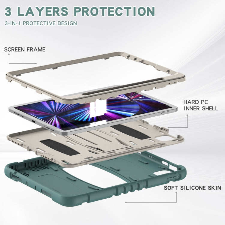 For iPad Pro 11 2022 / 2021 / 2020 / 2018 3-Layer Protection Screen Frame + PC + Silicone Shockproof Combination Tablet Case with Holder(Emerald Green)