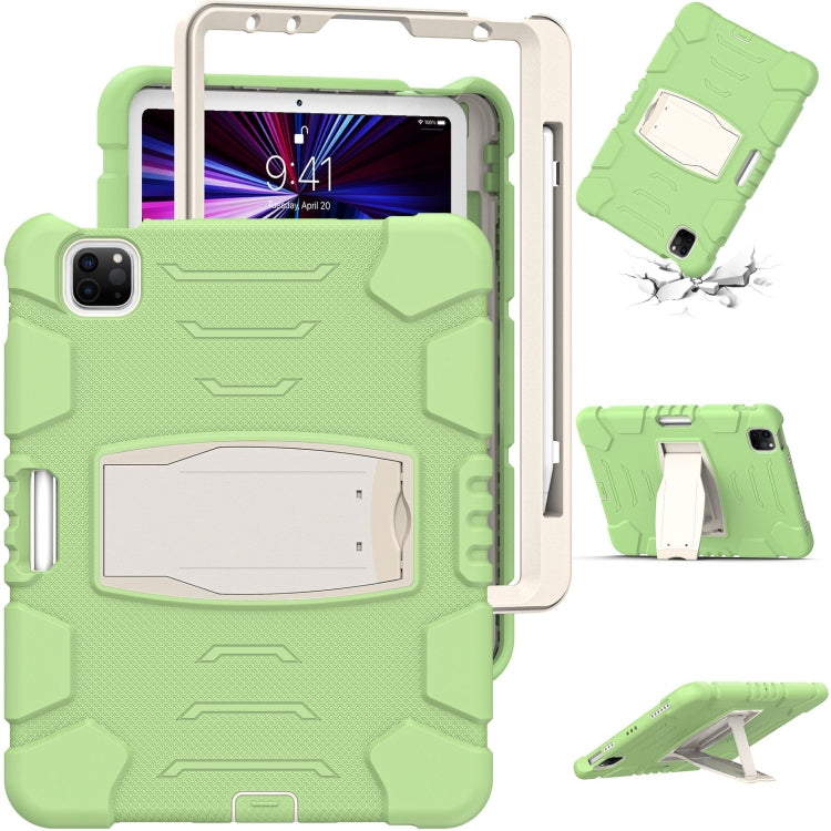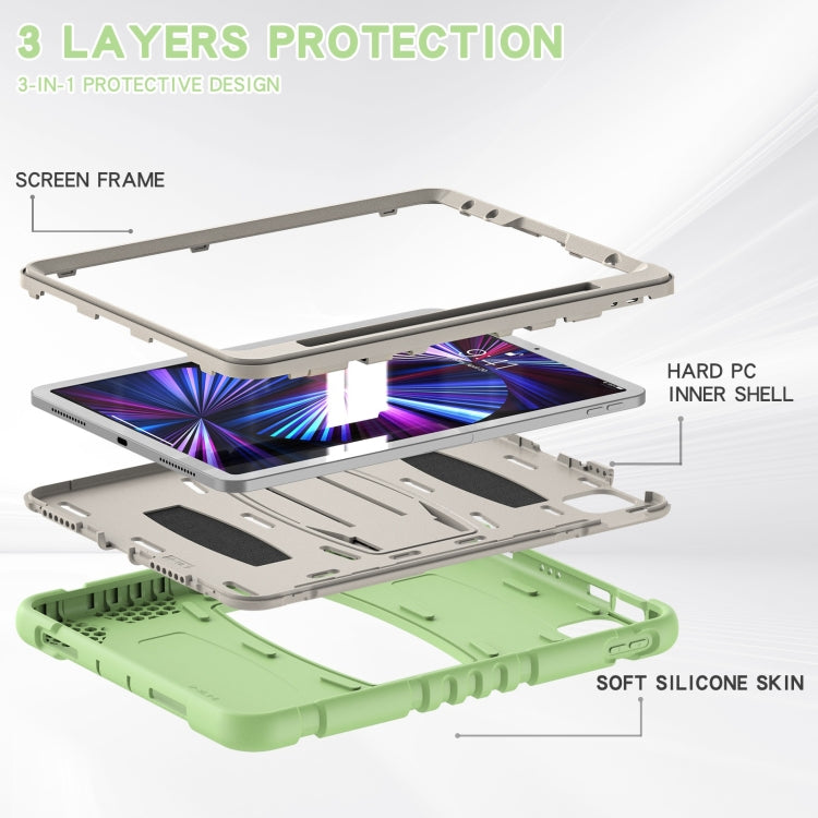 For iPad Pro 11 2022 / 2021 / 2020 / 2018 3-Layer Protection Screen Frame + PC + Silicone Shockproof Combination Tablet Case with Holder(Matcha Green)
