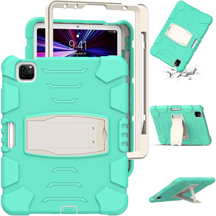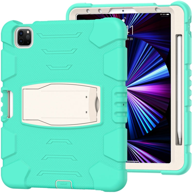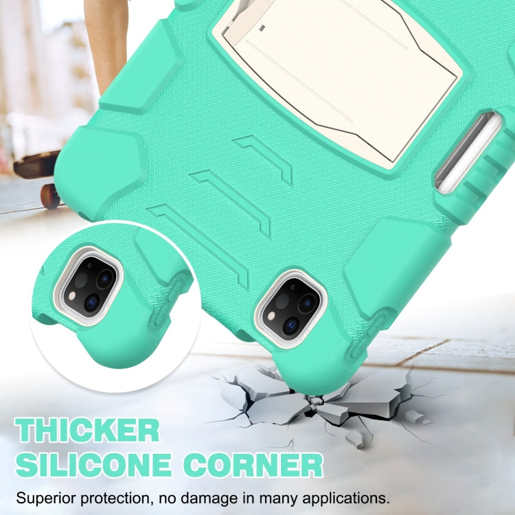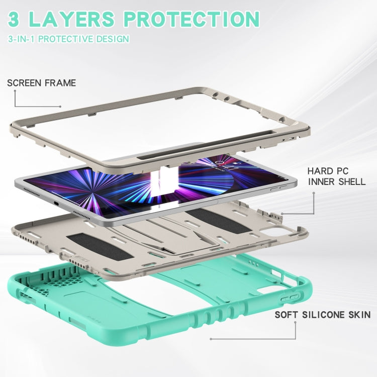 For iPad Pro 11 2022 / 2021 / 2020 / 2018 3-Layer Protection Screen Frame + PC + Silicone Shockproof Combination Tablet Case with Holder(Mint Green)