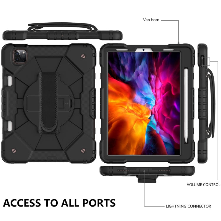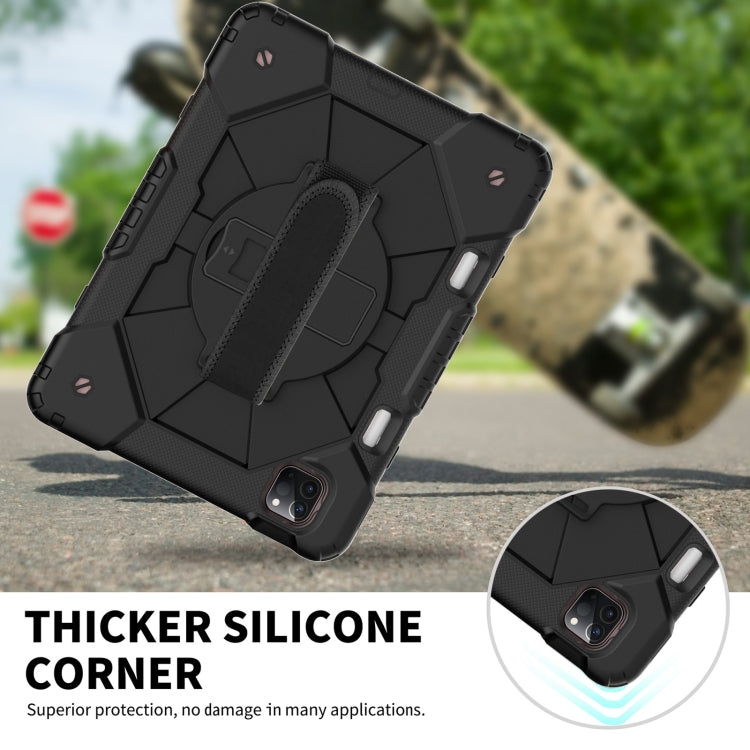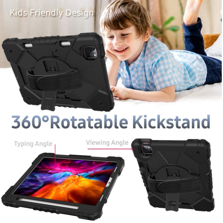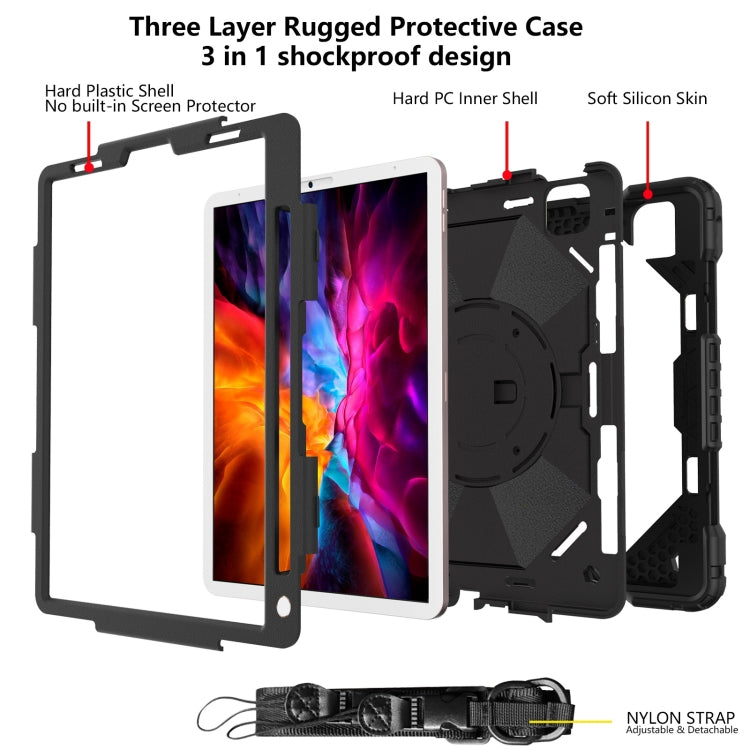 For iPad Pro 11 2022 / 2021 / 2020 / 2018 / Air 2020 10.9 Contrast Color Robot Shockproof Silicone PC Tablet Case with Holder & Shoulder Strap(Black)
