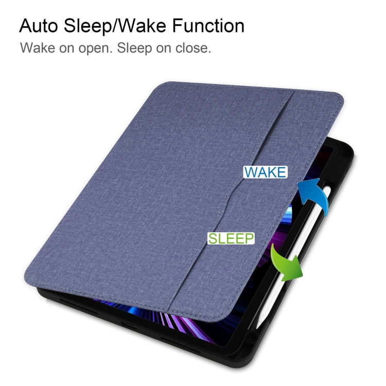 For iPad Pro 11 2022 / 2021 / 2020 / 2018 Cloth Texture TPU Horizontal Flip Leather Tablet Case with Pen Slot & Holder(Blue)