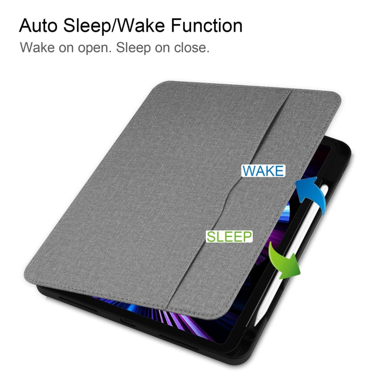 For iPad Pro 11 2022 / 2021 / 2020 / 2018 Cloth Texture TPU Horizontal Flip Leather Tablet Case with Pen Slot & Holder(Grey)