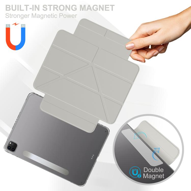 For iPad Pro 11 2022 / 2021 / 2020 Detachable Backshell Folding Holder Smart Tablet Leather Case(Grey)