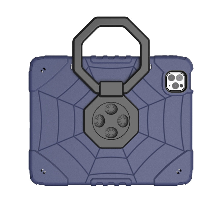 For iPad Pro 11 2022 / 2021 / 2020 Spider Turntable Handle Stress Relief Tablet Case(Navy Blue Black)