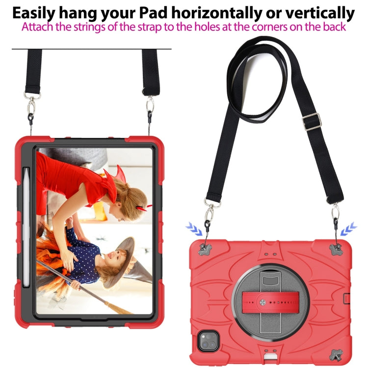 For iPad Pro 11 2022 / Air 10.9 2022 Bat Hand Grip Turntable Stand Tablet Case(Red Black)
