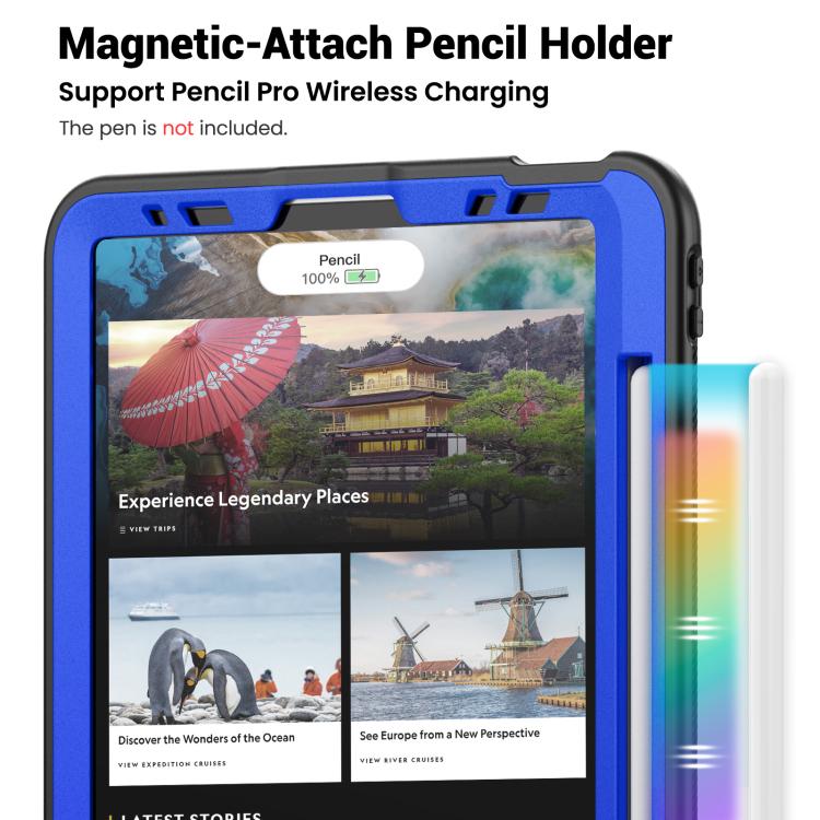 For iPad Pro 11 2022 / Air 10.9 2022 Honeycomb Hybrid Tablet Case with Handle Holder & Strap(Dark Blue)