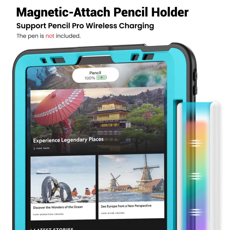 For iPad Pro 11 2022 / Air 10.9 2022 Honeycomb Hybrid Tablet Case with Handle Holder & Strap(Light Blue)