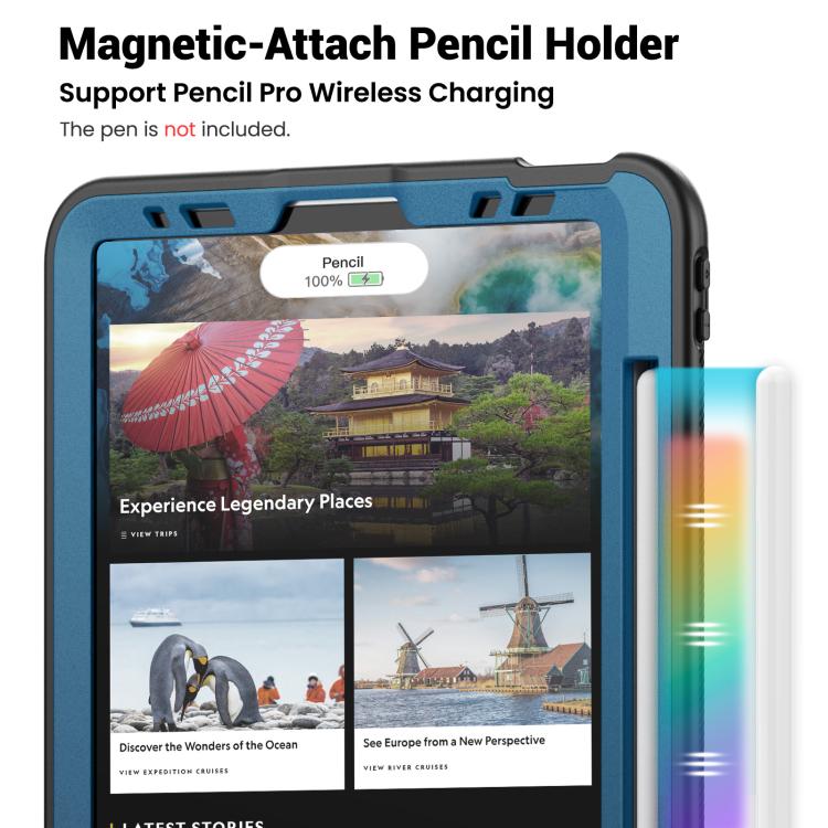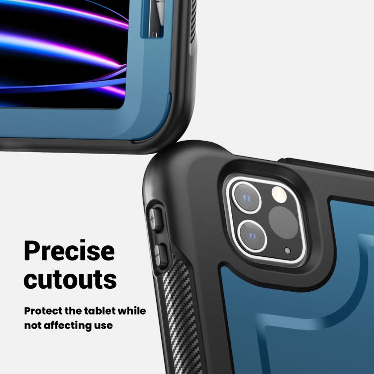 For iPad Pro 11 2022 / Air 10.9 2022 Honeycomb Hybrid Tablet Case with Handle Holder & Strap(Navy Blue)