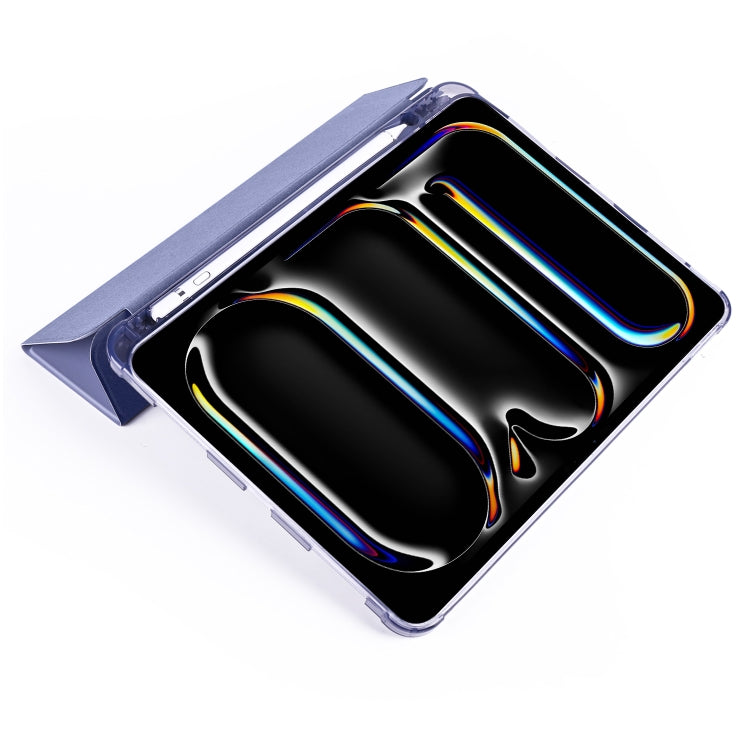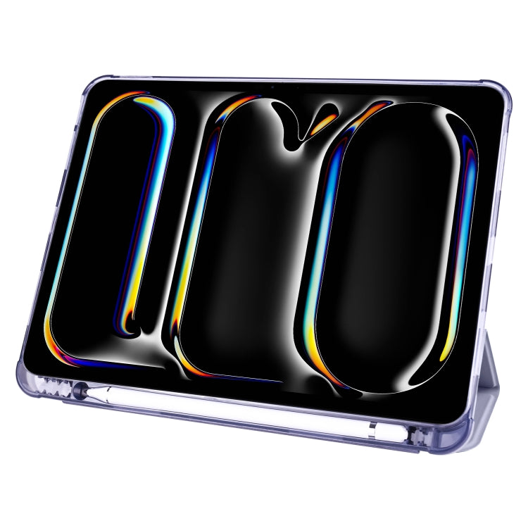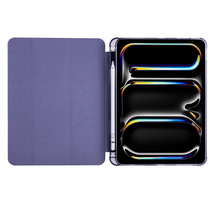 For iPad Pro 11 2024 3-fold TPU Leather Smart Tablet Case with Pen Slot(Lavender Purple)