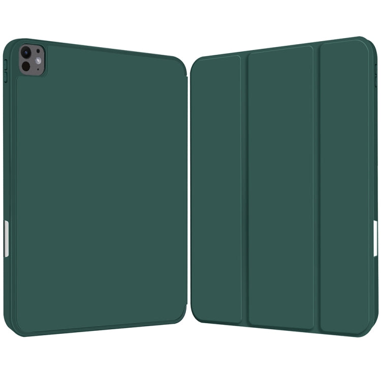 For iPad Pro 11 2024 3-fold TPU Smart Leather Tablet Case with Pen Slot(Dark Green)
