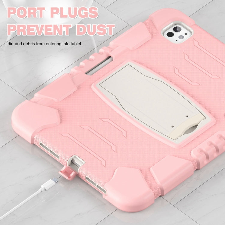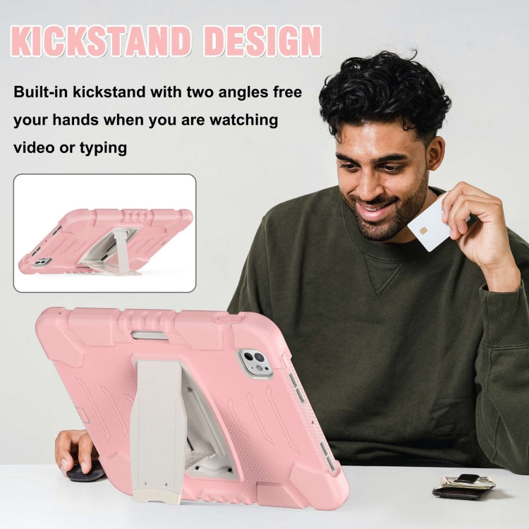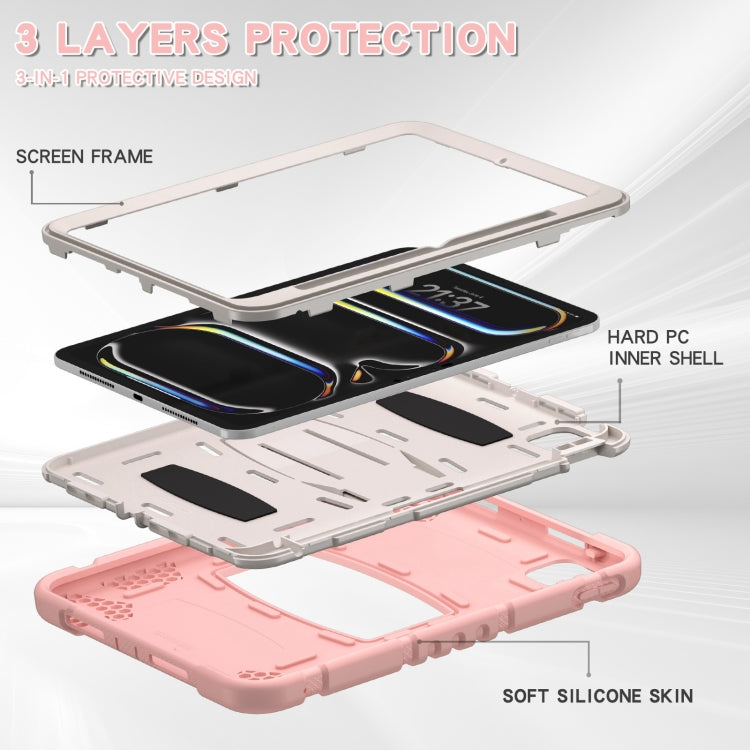 For iPad Pro 11 2024 3-Layer Silicone Hybrid PC Tablet Case(Cherry Blossoms Pink)