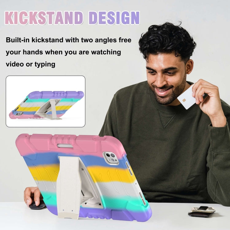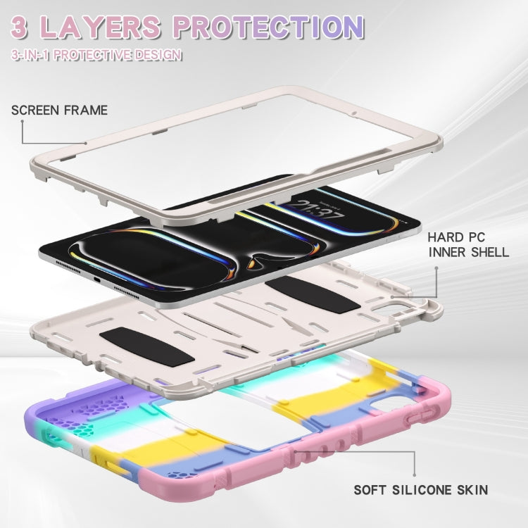 For iPad Pro 11 2024 3-Layer Silicone Hybrid PC Tablet Case(Colorful Pink)
