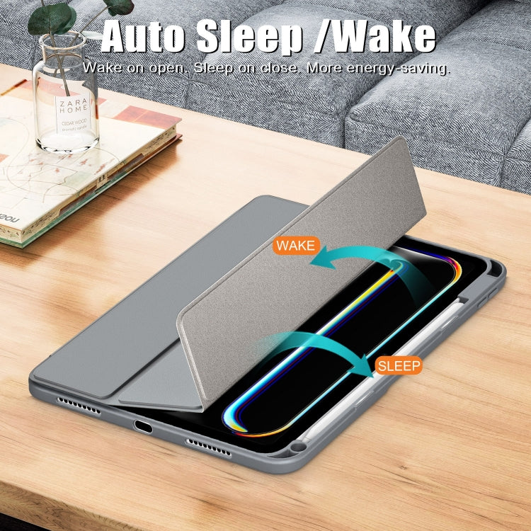 For iPad Pro 11 2024 Acrylic 3-Fold Smart Leather Tablet Case(Grey)