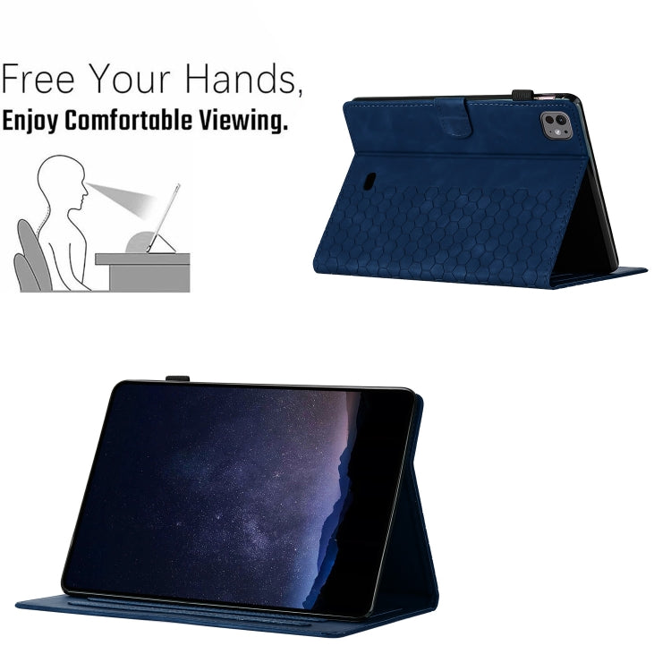 For iPad Pro 11 2024 / Air 10.9 2022 Honeycomb Embossed Leather Smart Tablet Case(Blue)