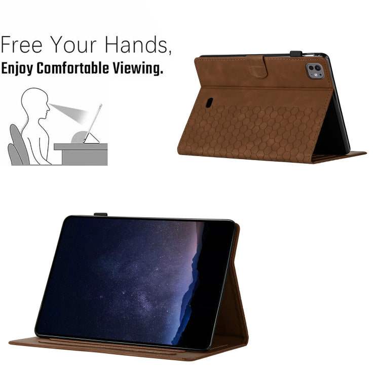 For iPad Pro 11 2024 / Air 10.9 2022 Honeycomb Embossed Leather Smart Tablet Case(Brown)