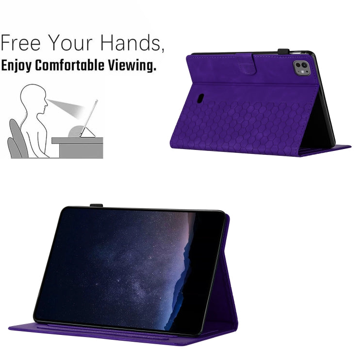 For iPad Pro 11 2024 / Air 10.9 2022 Honeycomb Embossed Leather Smart Tablet Case(Purple)