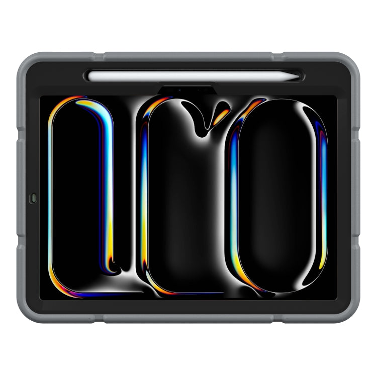 For iPad Pro 11 2024 Armor Holder Silicone Hybrid PC Tablet Case(Grey Black)