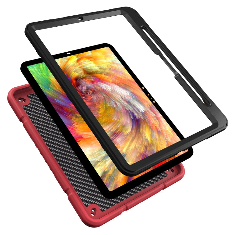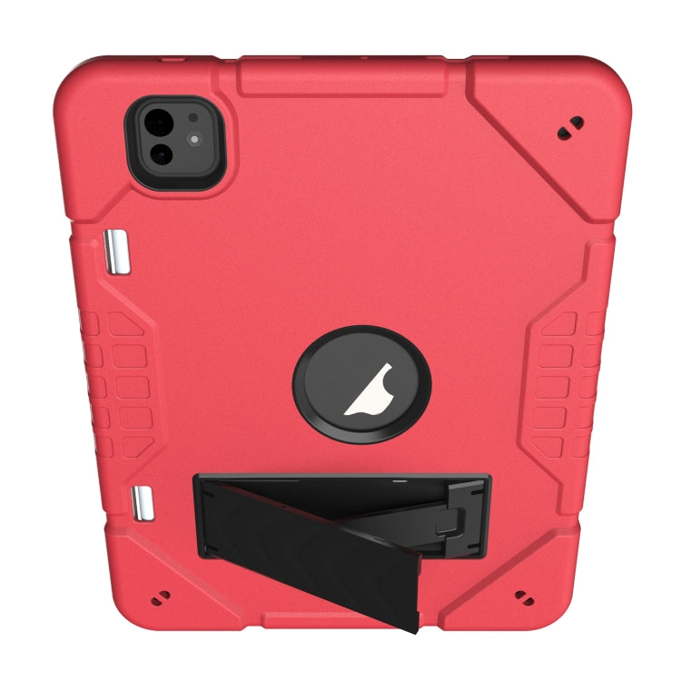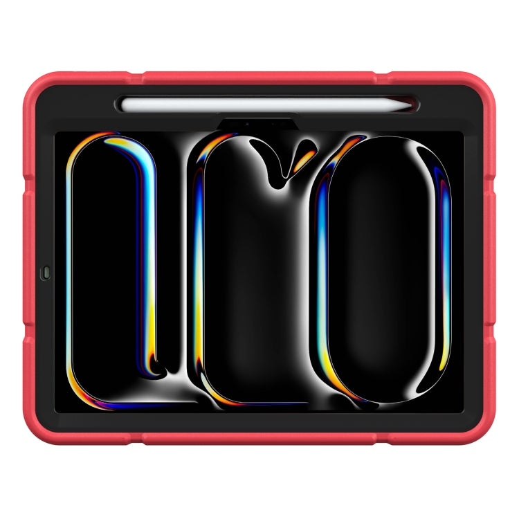 For iPad Pro 11 2024 Armor Holder Silicone Hybrid PC Tablet Case(Red Black)