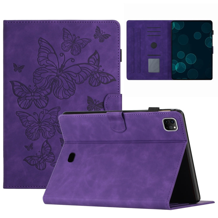 For iPad Pro 11 2024 Butterflies Embossed Leather Smart Tablet Case(Purple)