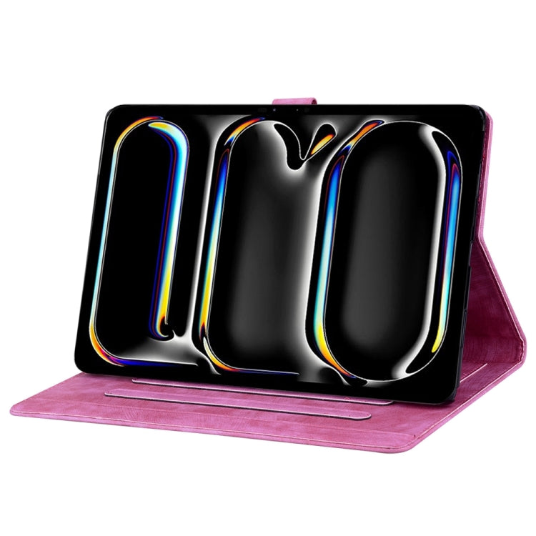 For iPad Pro 11 2024 Cartoon Sakura Cat Embossed Smart Leather Tablet Case(Rose Red)
