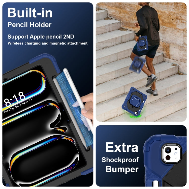 For iPad Pro 11 2024 Contrast Color Robot Silicone Hybrid PC Tablet Case(Navy Black)
