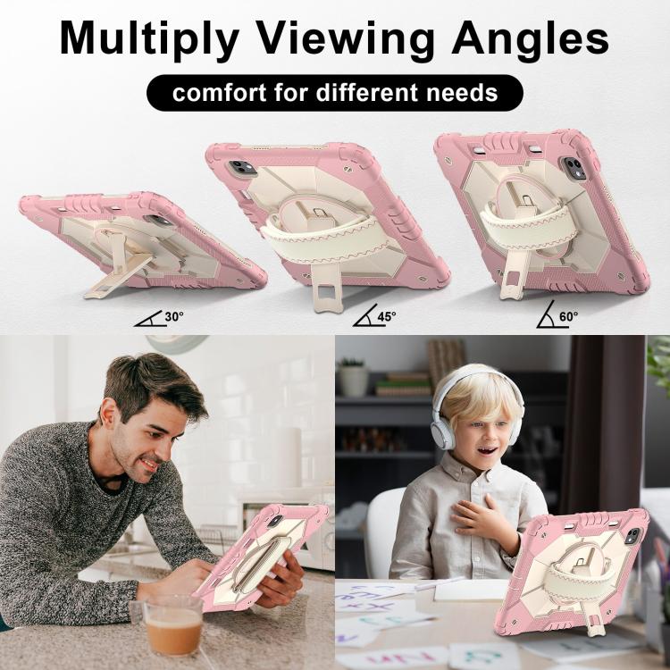For iPad Pro 11 2024 Contrast Color Robot Silicone Hybrid PC Tablet Case(Rose Gold Beige)