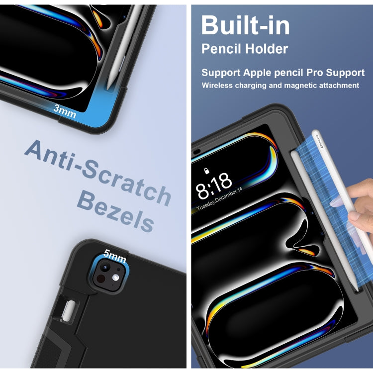 For iPad Pro 11 2024 Contrast Color Silicone Acrylic PC Tablet Case with Holder(Black)