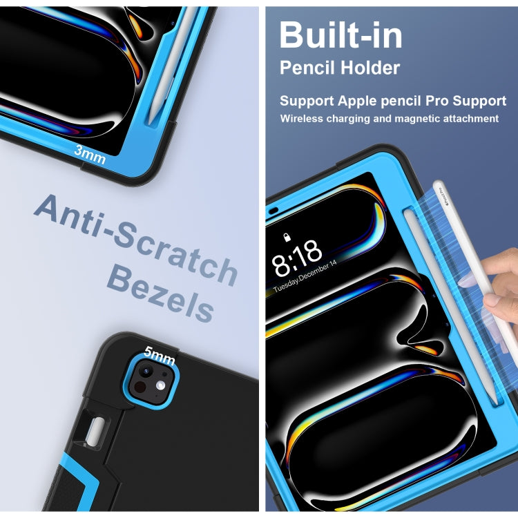 For iPad Pro 11 2024 Contrast Color Silicone Acrylic PC Tablet Case with Holder(Black Blue)