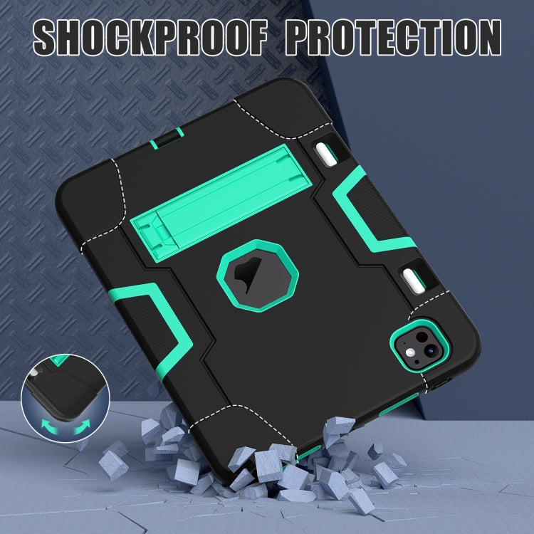 For iPad Pro 11 2024 Contrast Color Silicone Acrylic PC Tablet Case with Holder(Black Mint Green)