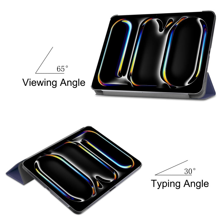 For iPad Pro 11 2024 Custer Pure Color 3-Fold Holder Smart Leather Tablet Case(Blue)