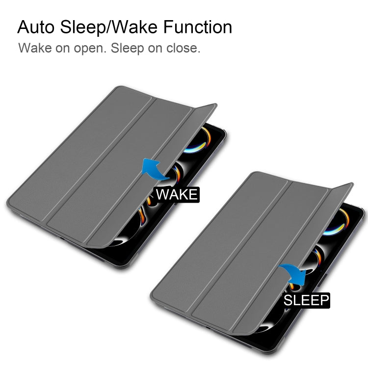 For iPad Pro 11 2024 Custer Pure Color 3-Fold Holder Smart Leather Tablet Case(Gray)