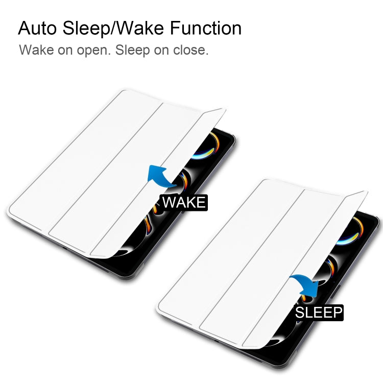 For iPad Pro 11 2024 Custer TPU Pure Color 3-Fold Holder Smart Leather Tablet Case with Pen Tray(White)