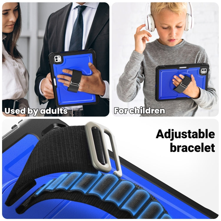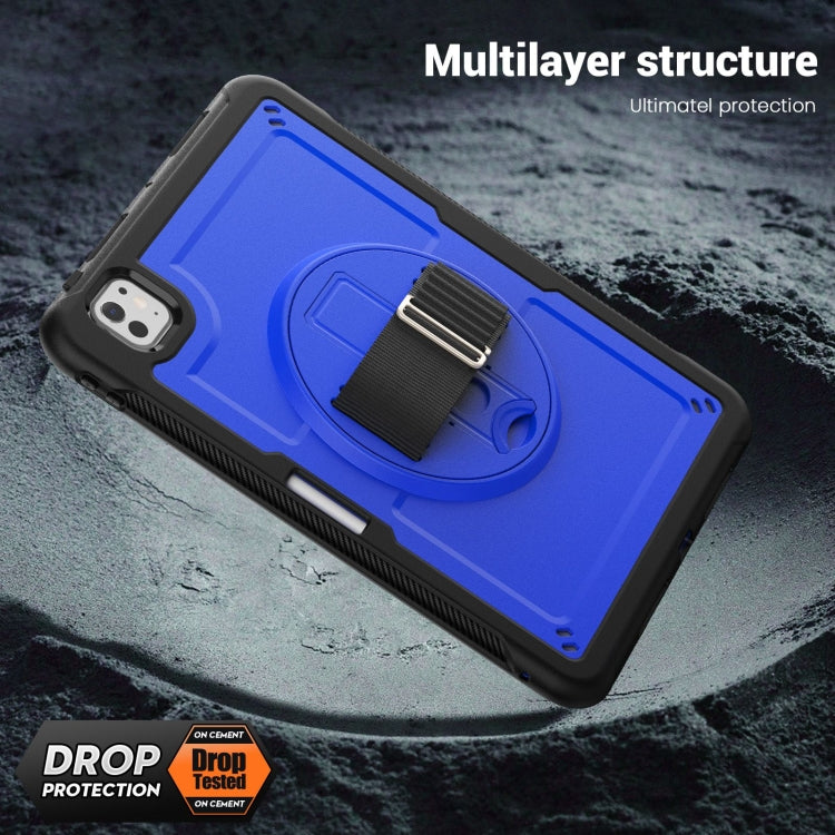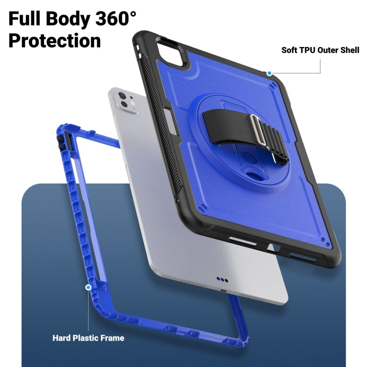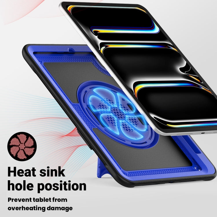 For iPad Pro 11 2024 Honeycomb Hand Grip Turntable Stand Tablet Case(Dark Blue)
