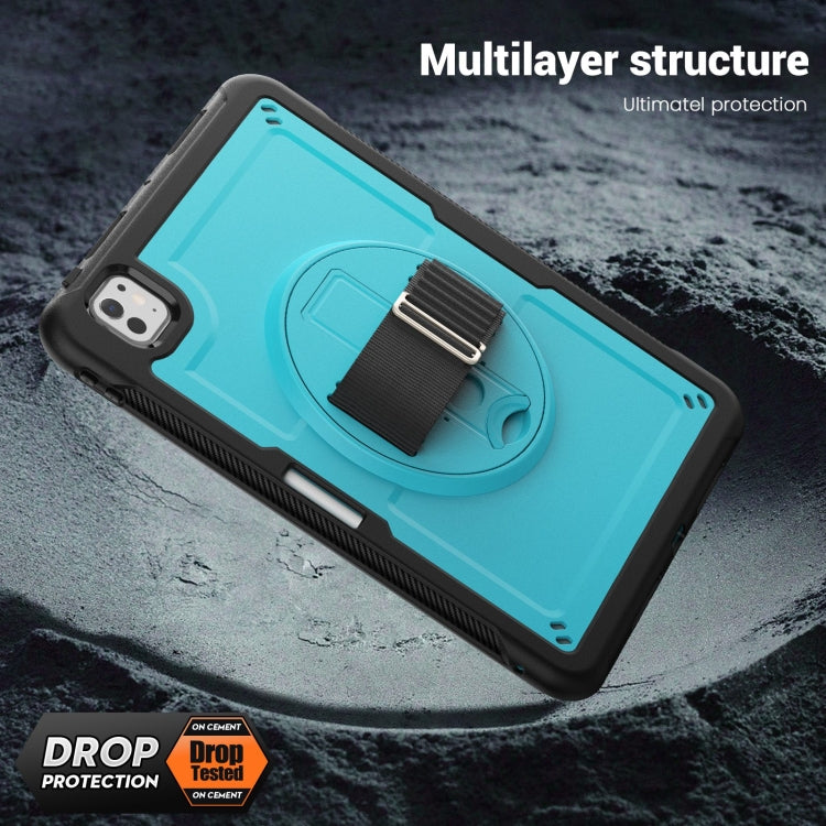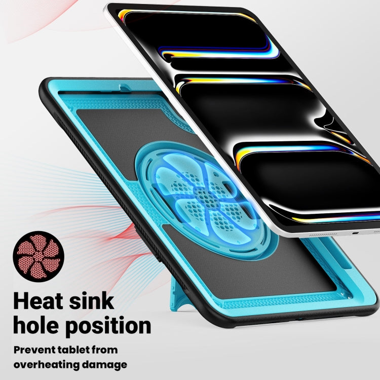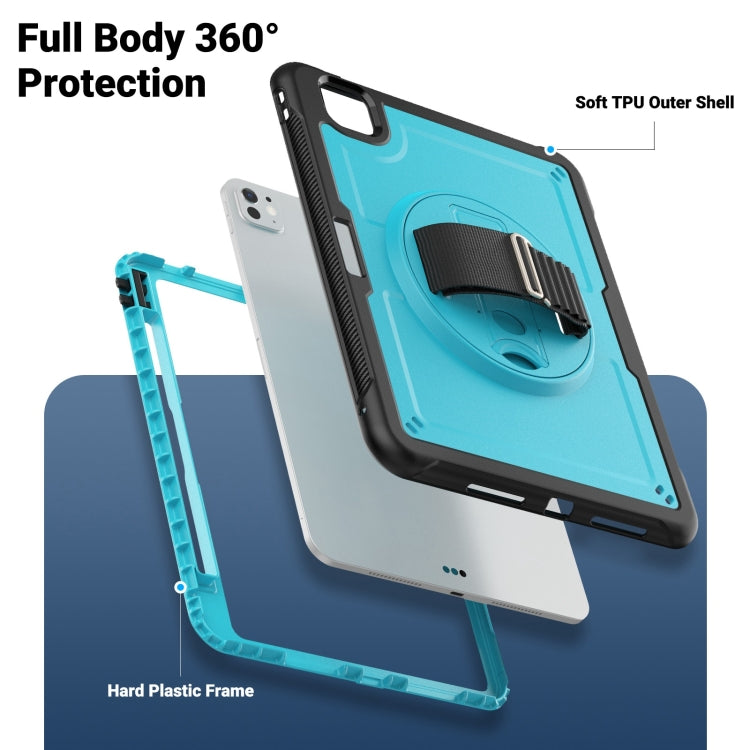 For iPad Pro 11 2024 Honeycomb Hand Grip Turntable Stand Tablet Case(Light Blue)