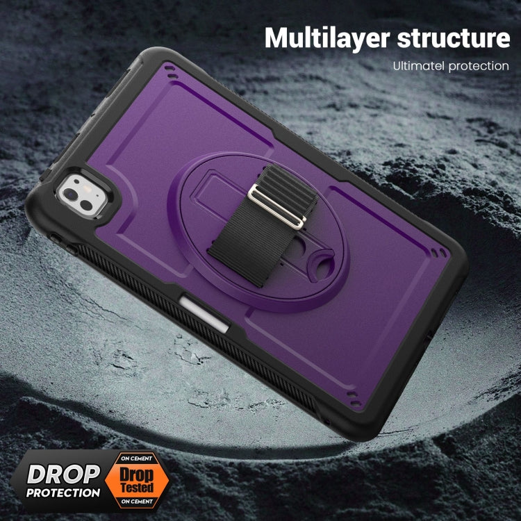 For iPad Pro 11 2024 Honeycomb Hand Grip Turntable Stand Tablet Case(Purple)