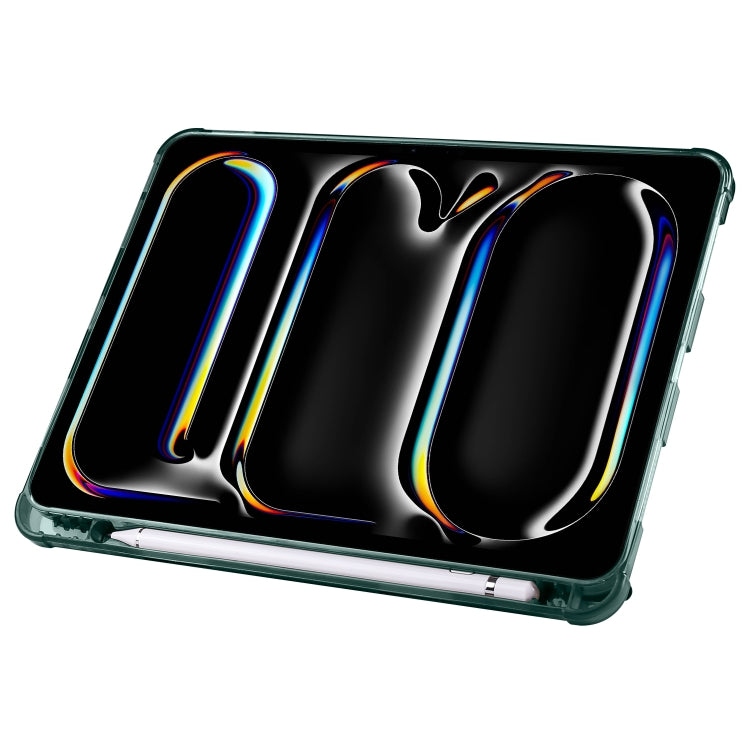 For iPad Pro 11 2024 Multi-folding TPU Leather Smart Tablet Case with Pen Slot(Pine Green)